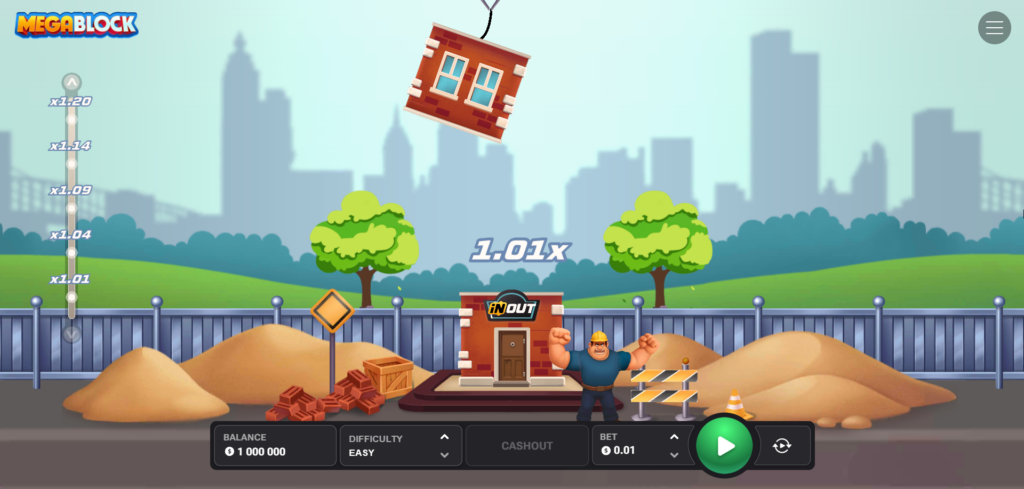Стратегията за ръчно излизане в детайли. Можете да спрете, когато усетите, че кулата е прекалено нестабилна. Алчността е главният враг. Кликнете на бутона, за да приберете текущия мултипликатор по време на сесията ви в megablock casino inout games.